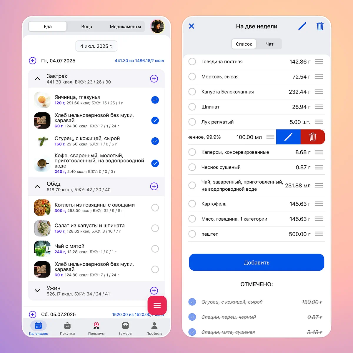 - Не забудьте добавть в календарь еду, которую вы съели вне плана. ❤️
